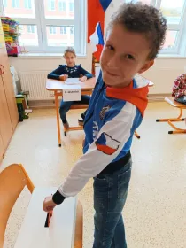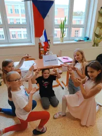 Minulý týden 17. října si paní učitelka G. Horáková pro děti připravila v hodině vlastivědy volby do sněmovny třídy.