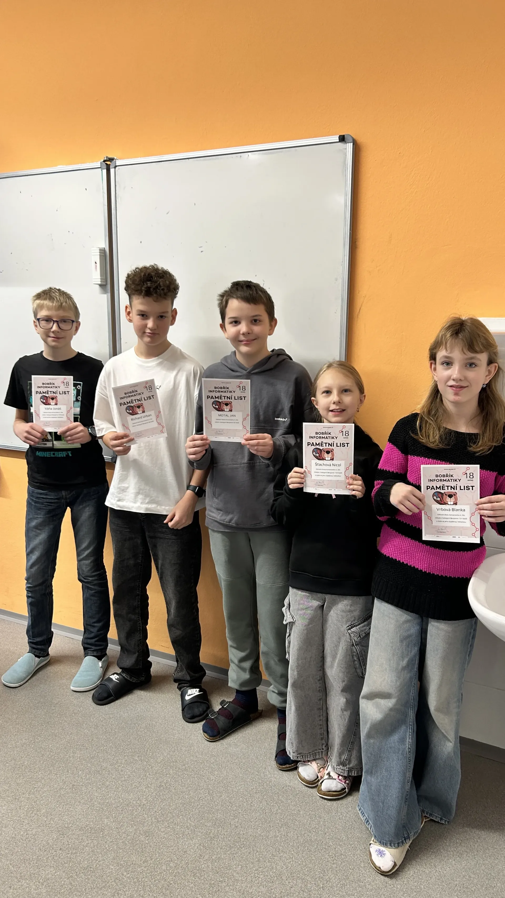 Naše škola se zapojila do soutěže Bobřík informatiky. Tato soutěž láká zvídavé žáky, které baví svět technologií a chtějí zjistit, že informatika je mnohem víc než jen ovládání počítače. Úkoly se týkají hlavně logického myšlení, algoritmů, práce s daty. Naši žáci 4. až 8. ročníku se zapojili do soutěže v online testu, kde vybírali správné odpovědi, manipulovali s objekty na obrazovce nebo sestavovali program z bloků.