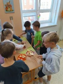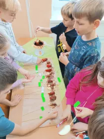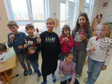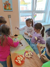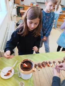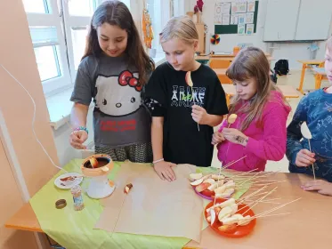 V rámci říjnového projektu: Jablečná kavárna si žáci 6. oddělení školní družiny připravili jablečná čokolizátka. Na nákup surovin byly využity finanční prostředky z velikonočniho jarmarku.