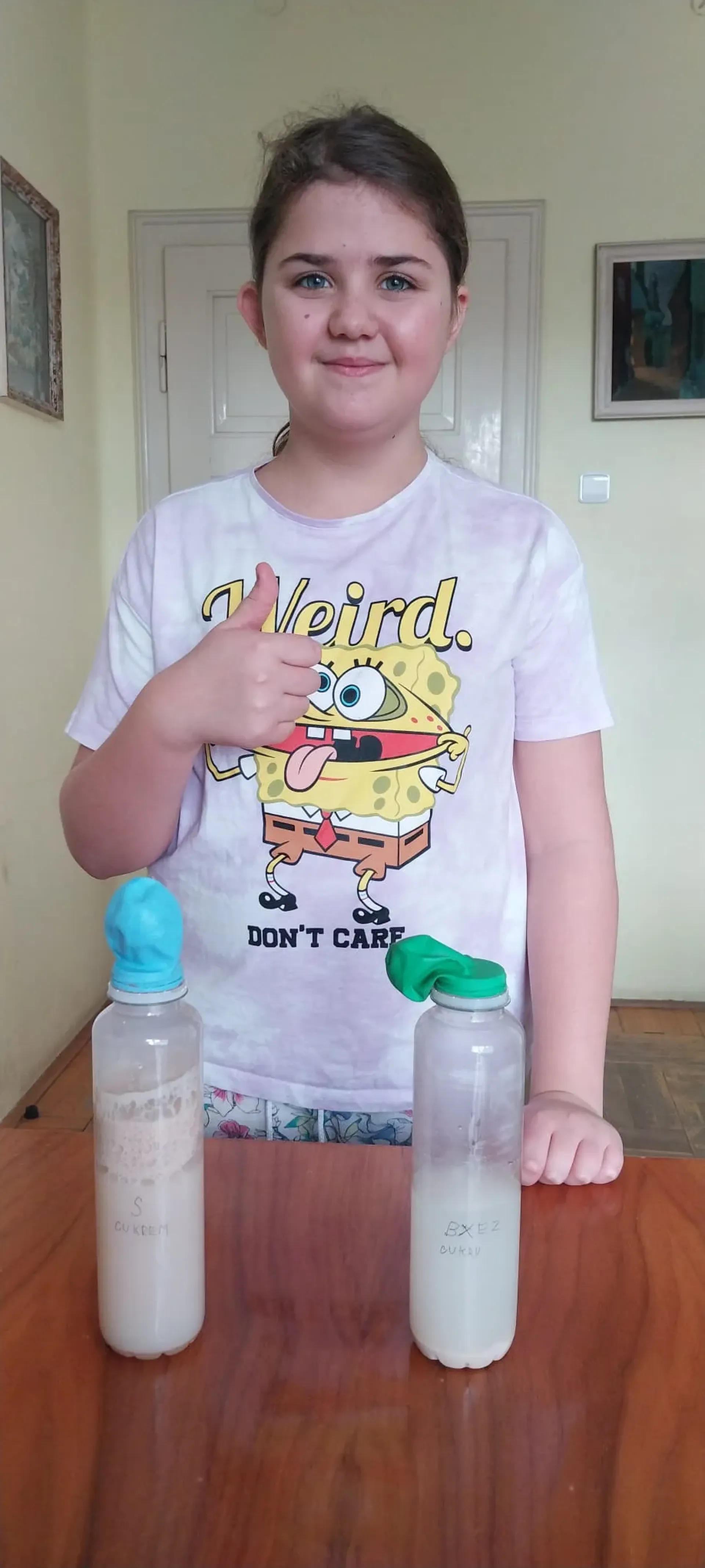 V hodině přírodopisu se děti ze tříd VI.A a VI.B pustily do dobrovolného úkolu, který názorně ukázal, že věda může být nejen poučná, ale i zábavná. Pomocí jednoduchého pokusu s kvasinkami si vyzkoušely, jak při kvašení vzniká oxid uhličitý-plyn, se kterým se běžně setkáváme, aniž bychom si to možná uvědomovali. K provedení pokusu stačilo jen několik běžně dostupných věcí: umělá láhev, vlažná voda, kvasnice, cukr a balónek. Do láhve nalily děti vodu, přidaly cukr a kvasnice a na hrdlo opatrně nasadily balónek. Pak už jen pozorovaly, co se bude dít. Během krátké chvíle se balónek začal pomalu nafukovat. Děti tak na vlastní oči viděly důkaz toho, že při kvašení vzniká oxid uhličitý, který balónek plnil drobnými bublinkami.