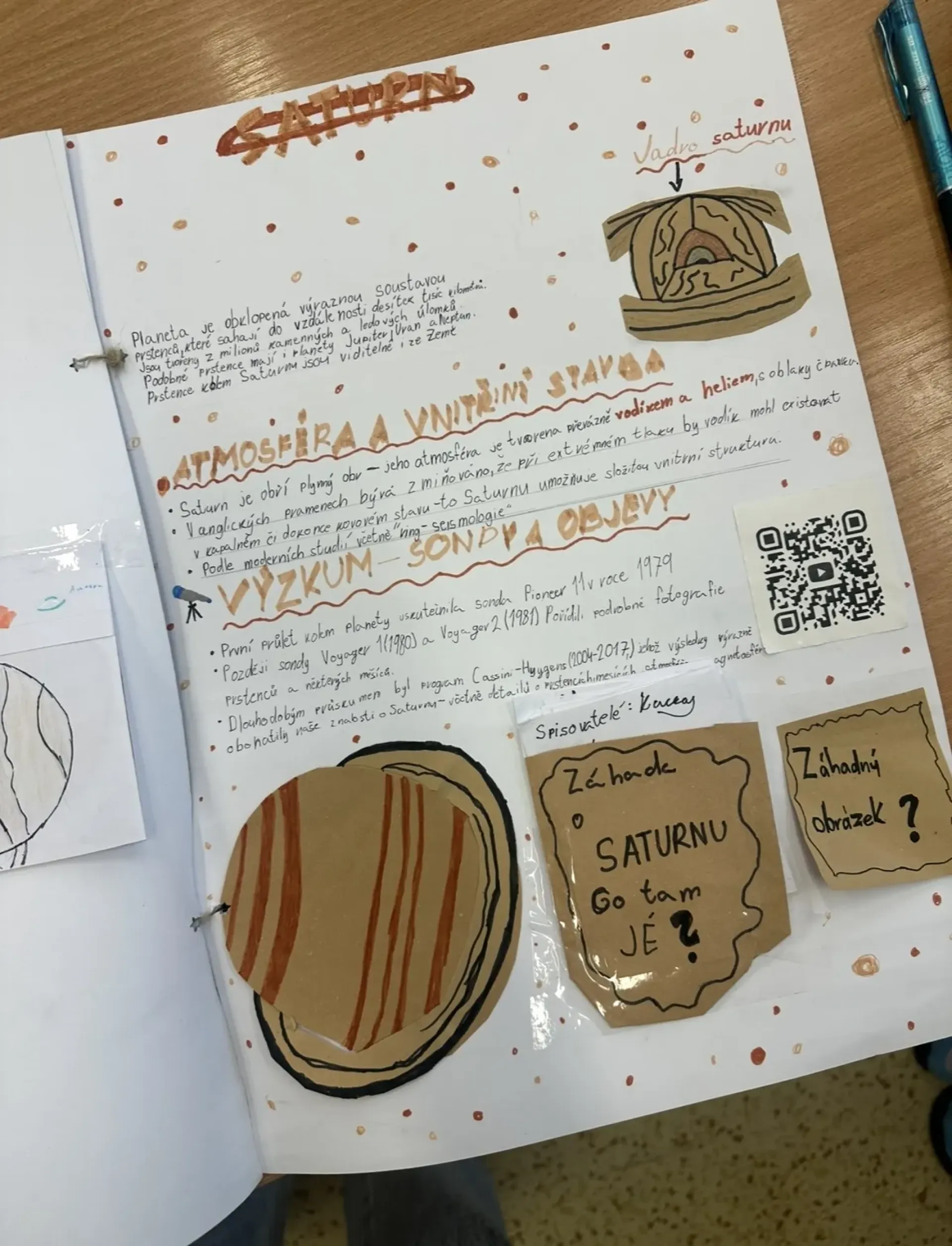V hodinách přírodovědy jsme zpracovávali projekt o vesmíru. Pracovali jsme ve dvojicích a každá dvojice zpracovala jiné téma týkající se vesmíru. My jsme například dělali Mars a Mléčnou dráhu. Do projektu jsme přidávali různé obrázky a taky QR kódy, třeba na videa. Potom jsme všechny projekty daly k sobě a vznikl nám jeden velký vesmírný atlas. Dozvěděli jsme se spoustu nových zajímavostí. Moc se nám to líbilo a určitě bychom chtěli něco takového zopakovat.
