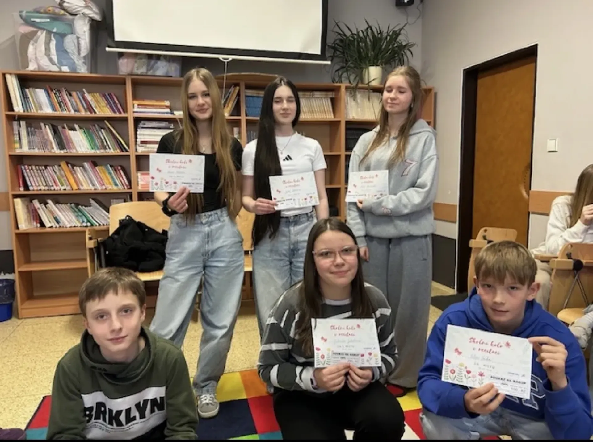 V kategorii 6. - 7. ročníku obsadila 1. místo Gabriela Jakobová ze 7.B. Na 2. místě se umístil Jirka Málek z 6.B. A na 3. místě skončil Filip Trčka ze 7.C.V kategorii 8. - 9. ročník 1. místo vybojovala Julia Holodna z 8.A, na 2. místě se umístila Tereza Koldová z 8.A a 3. místo obsadila Adéla Rožnovská z 8.B. Všem zúčastněným děkujeme.Vítězům gratulujeme a přejeme mnoho úspěchů v okrskovém kole.