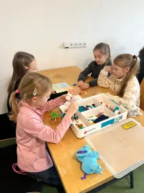 Přidanou hodnotou celého workshopu pak bylo to, že děti dopoledne strávily v autentickém prostředí původní budovy areálu Svit, který byl součástí baťovských závodů. O závodech, a vůbec o Tomáši Baťovi, jsme se s dětmi učili na podzim. Děti také na téma Zlín a Baťa vypracovávaly i úžasné projekty. Propojily si tak informace s realitou a dokázaly si lépe představit, v jakých podmínkách a budovách se dříve pracovalo a vyrábělo.