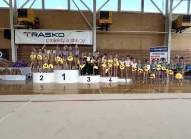 V neděli 26.4. se ve Vyškově konal závod estetické skupinové gymnastice v krátkém programu. V kategorii 8let a ml. se v ESG Cupu umístilo družstvo Pandy na 3.místě, které je složené z děvčat Natálie Halodová, Valerie Gillová 1.C a Anabelle Saleh 2.B. Závod byl zároveň přeborem Moravy a Oblastním přeborem Jihomoravského kraje, kde získali dvě 2.místa. Děkujeme za reprezentaci naší školy a přejeme hodně úspěchu na Mistrovství České republiky.