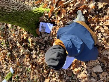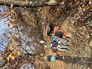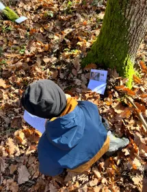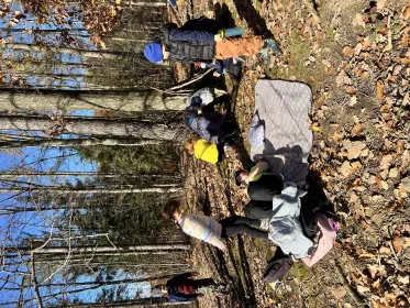 Les měl tak dobrou atmosféru, že jsme na stejném místě zůstali ještě asi půl hodinky. Proběhla závěrečná soutěž v postavení co největší věže z přírodnin a miniprojekt„staráme se o stromy“, který si skupinka děti vymyslela sama.